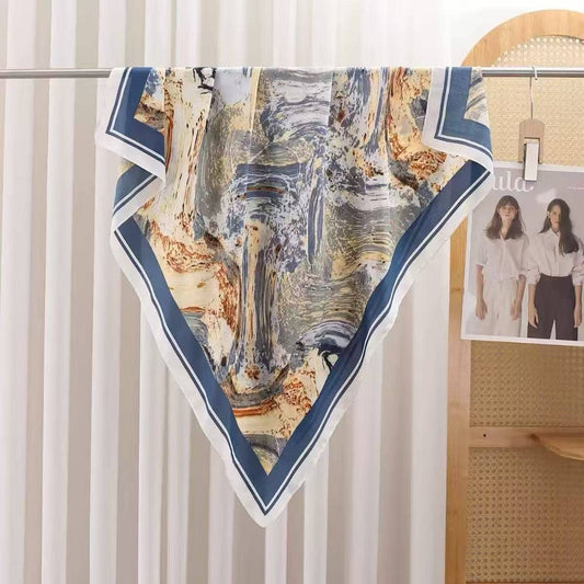 Marbled Blue Silky Square Scarf