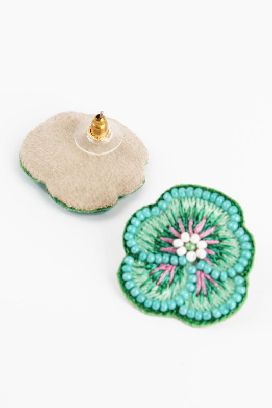My Doris Mint Pansy Beaded Stud Earrings