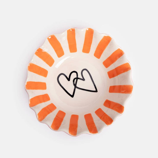 Coral Inside Stripe/Layered Hearts Frilly Bowl