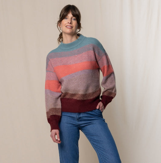 Lily & Me Rita Frill Shirt Floral Ikat Mulberry