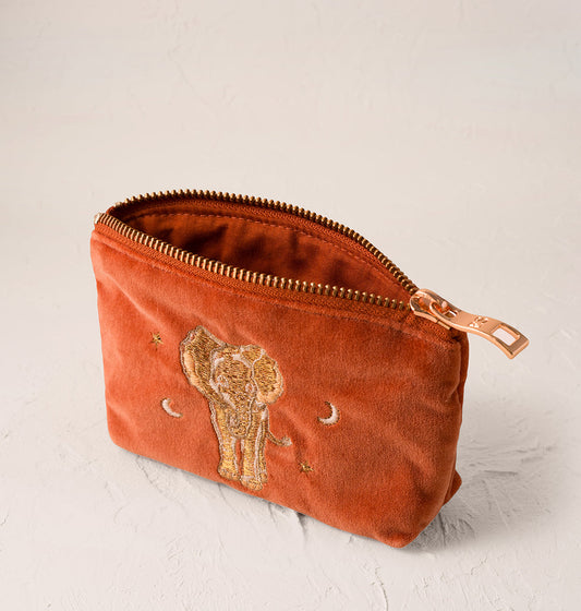 Golden Elephants Coin Purse in Rust