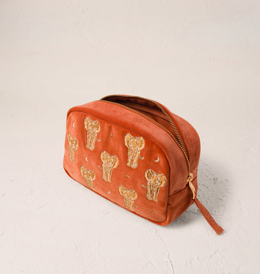 Golden Elephants Makeup Bag in Rust