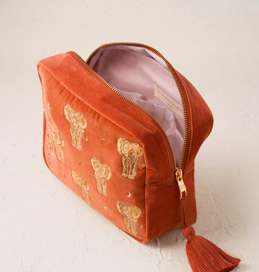 Golden Elephants Wash Bag in Rust