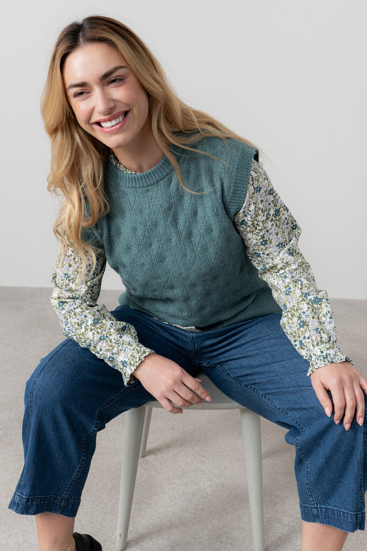 Lily & Me Wallace Pointelle Knit Tank Pine Green