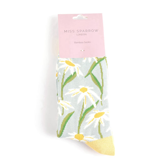 Duck Egg Oxeye Daisy Bamboo Socks