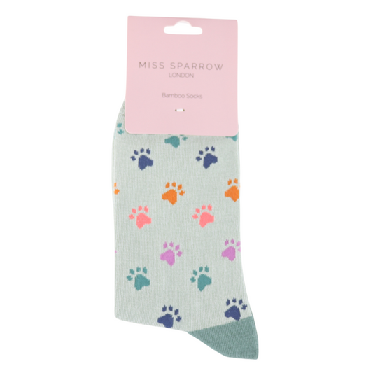 Duck Egg Paw Prints Bamboo Socks