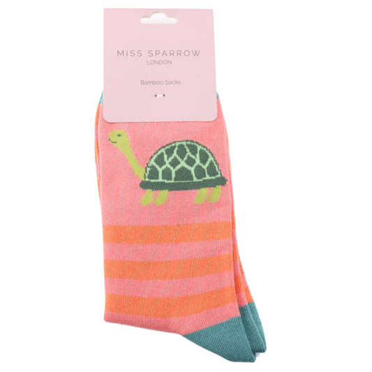 Turtle & Pink Stripes Bamboo Socks
