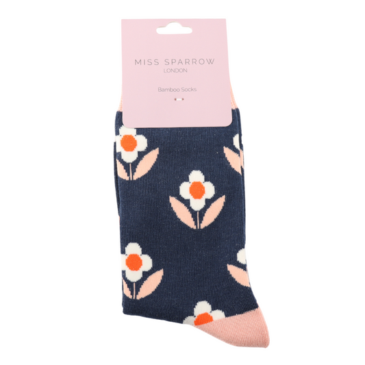 Navy Retro Daisies Bamboo Socks
