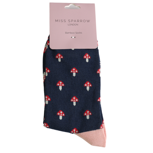 Navy Mini Mushrooms Bamboo Socks