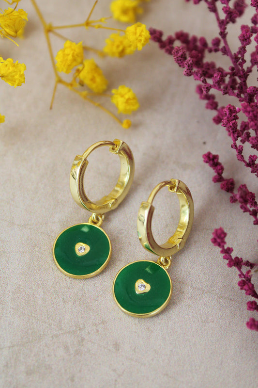 My Doris Green Enamel Coin Earrings