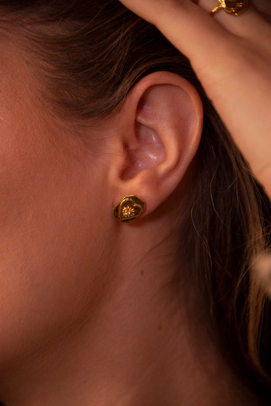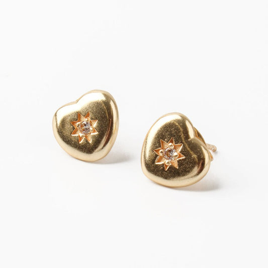 My Doris Crystal Gold Heart Starburst Stud Earrings