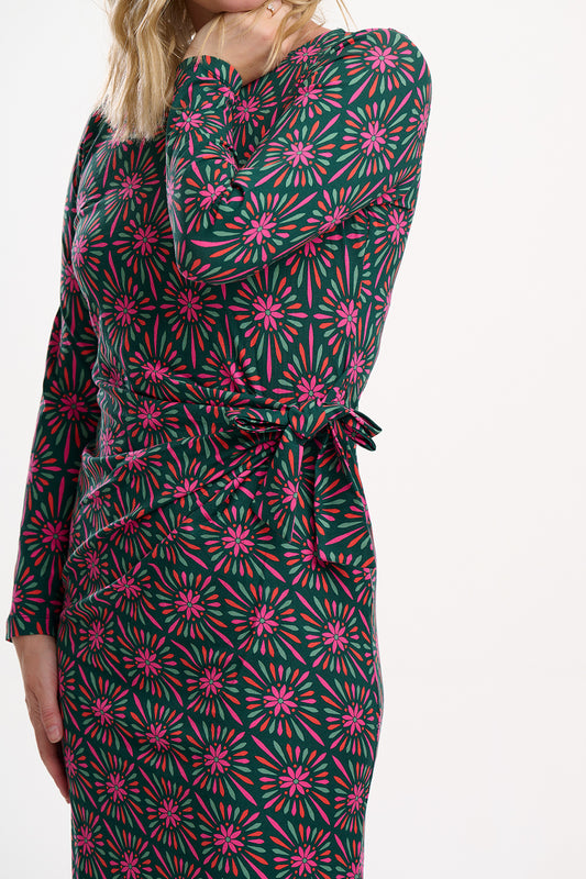 Sugarhill Brighton Claudia Multi Flower Explosion Jersey Tie Midi Dress