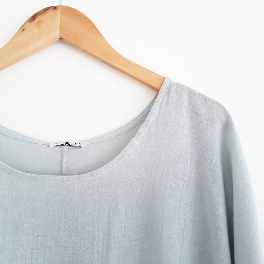 Cropped Linen Top in Silver Sky Blue Grey