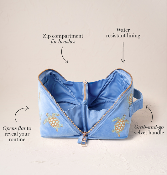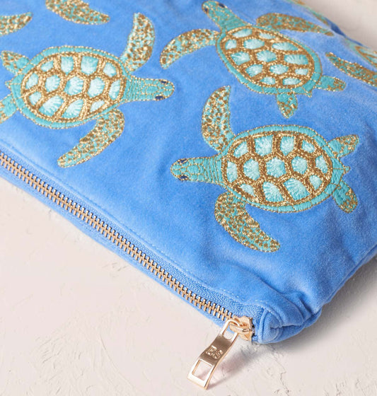 Turtle Conservation Open Flat Makeup Bag in Caribbean Blue