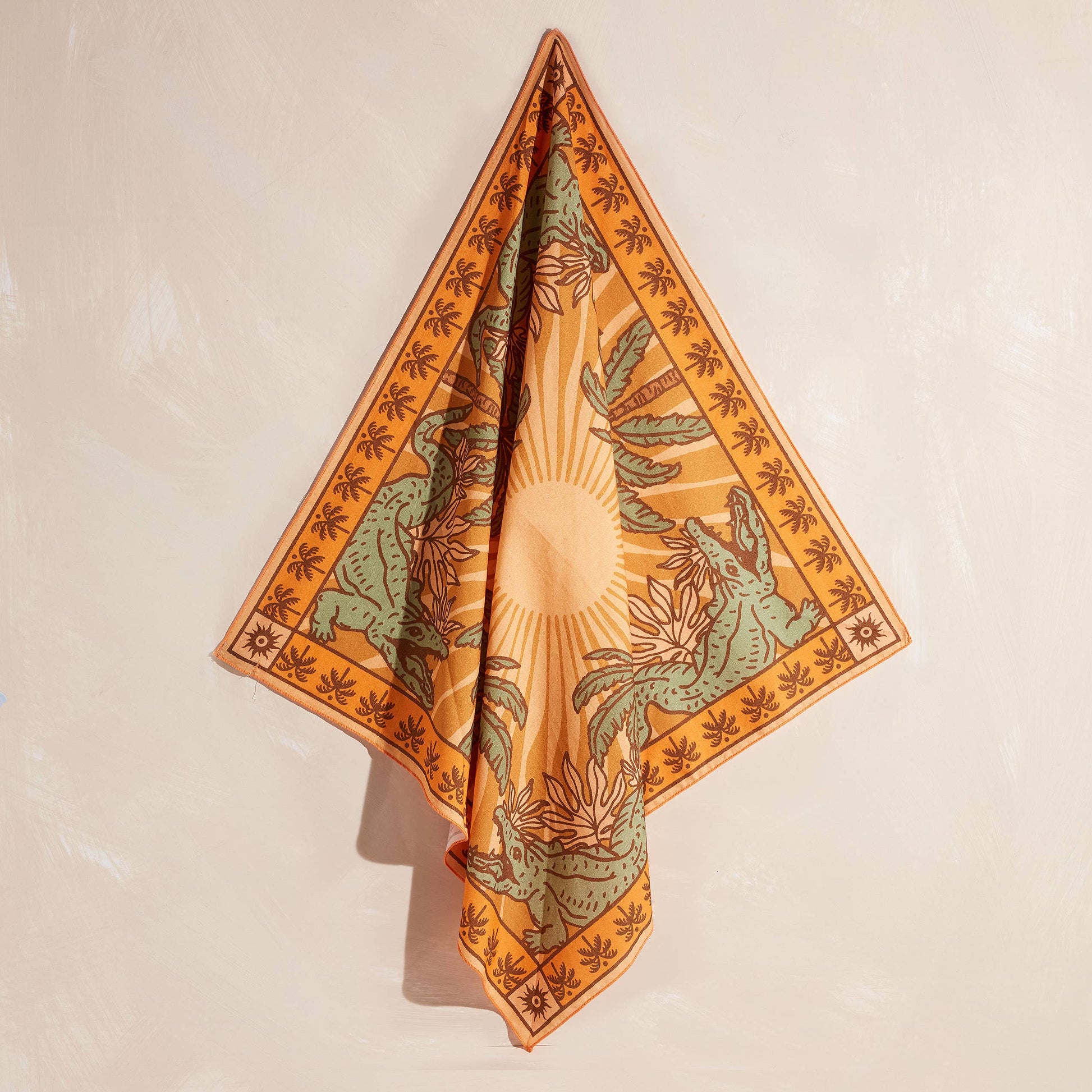 Accessorize your style with this bold, colourful, printed bandana featured in a classic cai & jo design that you can use as a face covering, tie into your hair, use as a neck scarf and more!