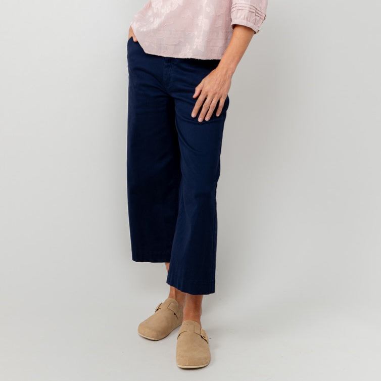 A great alternative to traditional straight leg chinos, the Isla twill trousers are cut in a cropped, wide-leg silhouette & are a great outfitter piece with your favourite t-shirt or a pretty blouse.