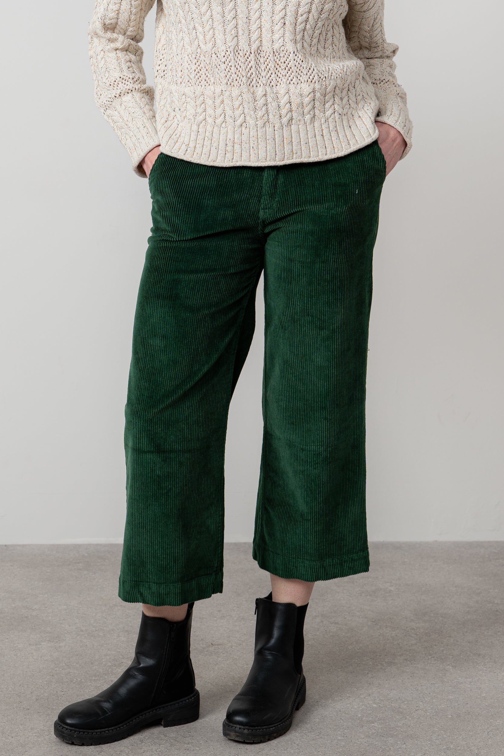 Lily & Me Isla Jumbo Cord Cropped Trousers Pine Green