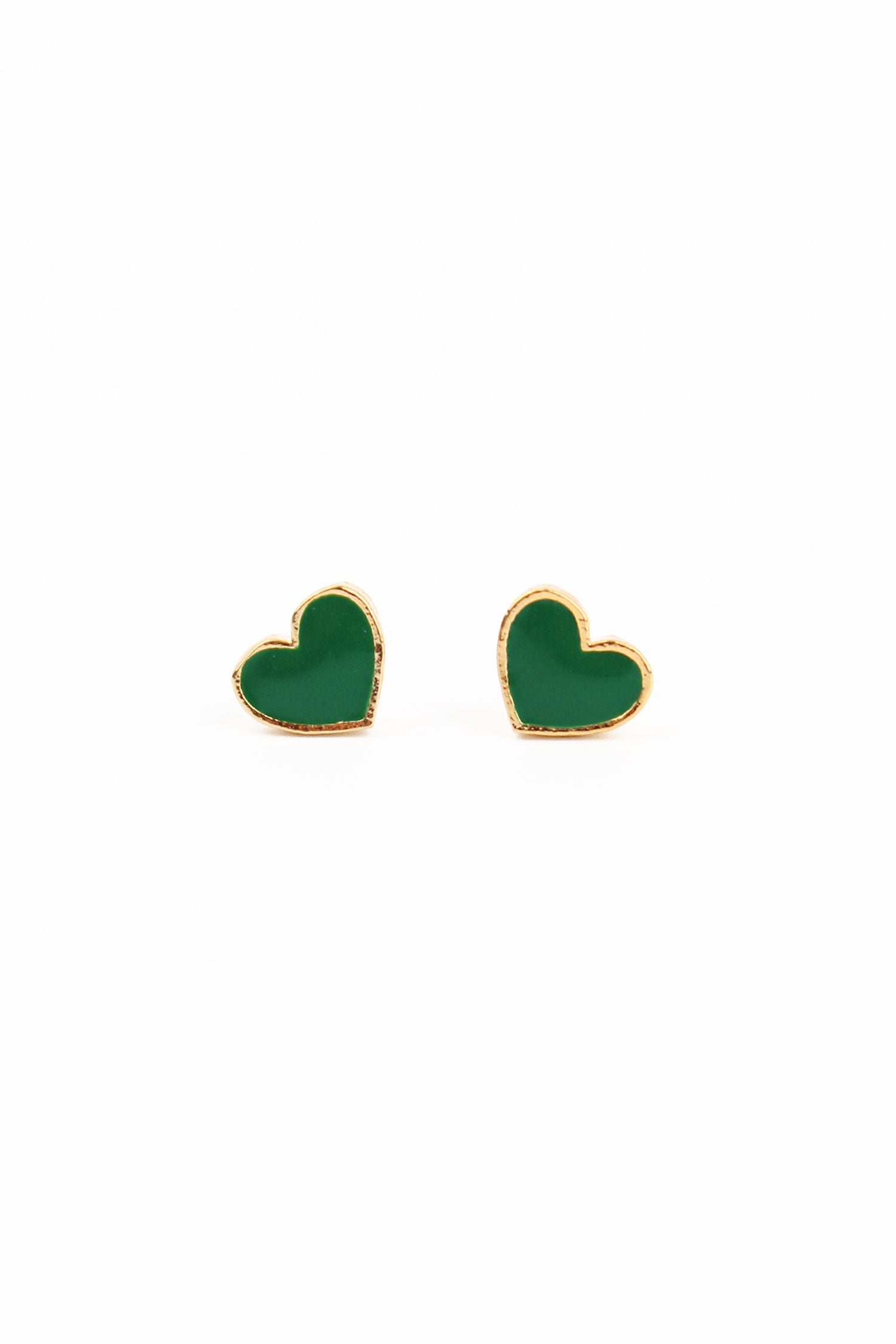 My Doris Gold & Green Enamel Small Heart Stud Earrings