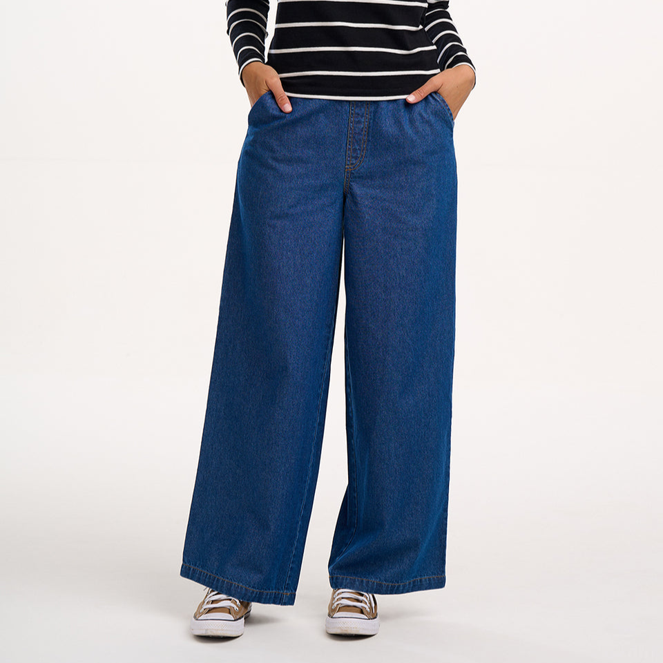 The Immy Trousers are your laid-back denim dream come true.. Made from 100% cotton in a rich deep blue wash, these wide-leg jeans strike the perfect balance between cool & comfy.